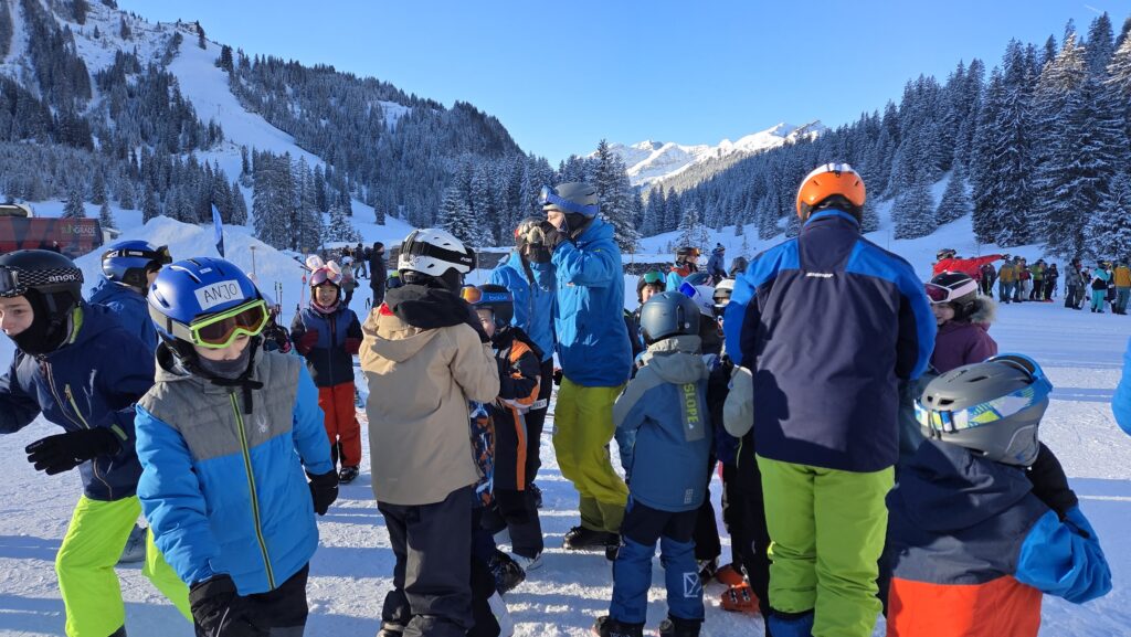 Alle Kinder haben gut geschlafen, sind fit und freuen sich auf den ersten Skitag der Kinderfreizeit.