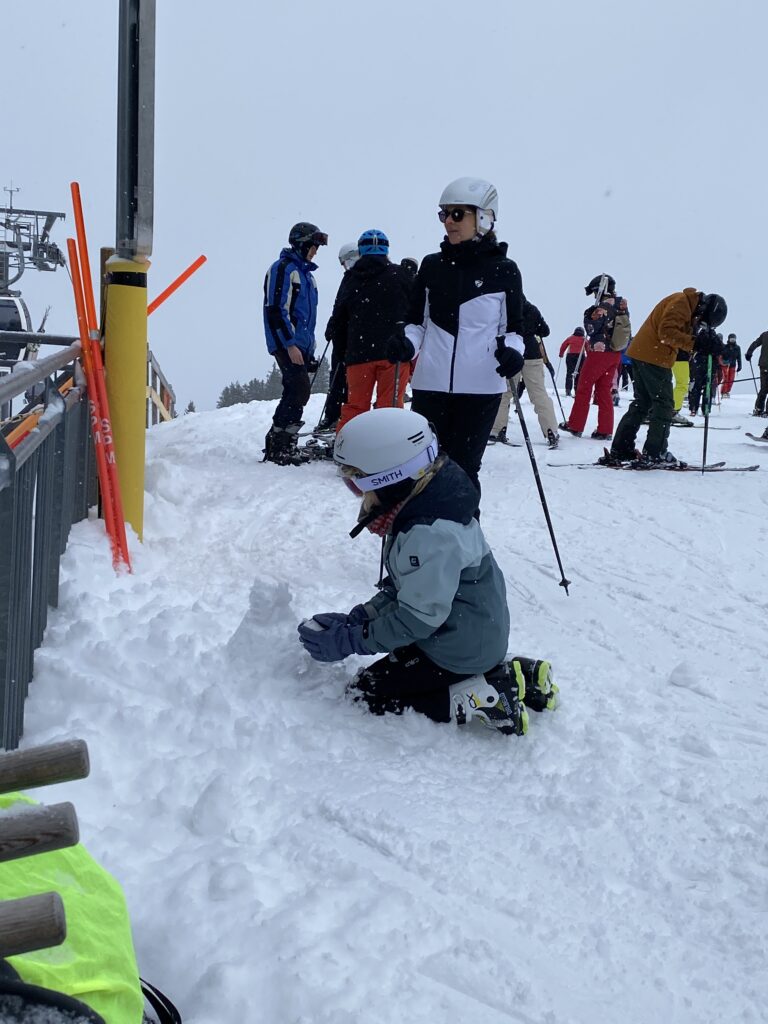 Kaum angekommen im Skigebiet ging es dann in den vorab eingeteilten Gruppen los. Drei Zweierteams an Skilehrern zogen los um die Gruppen zu bändigen und ihre geballte Kompetenz unter Beweis zu stellen. Am Besten ist das den Anfängern gelungen. Die sind nämlich keine mehr und konnten heute Nachmittag schon die ersten blauen Pisten bewältigen. Als dann der große Schneesturm langsam heranzog ging es schnell noch an den Bus zum Mittagessen. Die geschmierten Brote fanden hervorragenden Anklang. Der Tee war ebenso schnell in den Tassen, wie die Schneeflocken auf dem Boden.